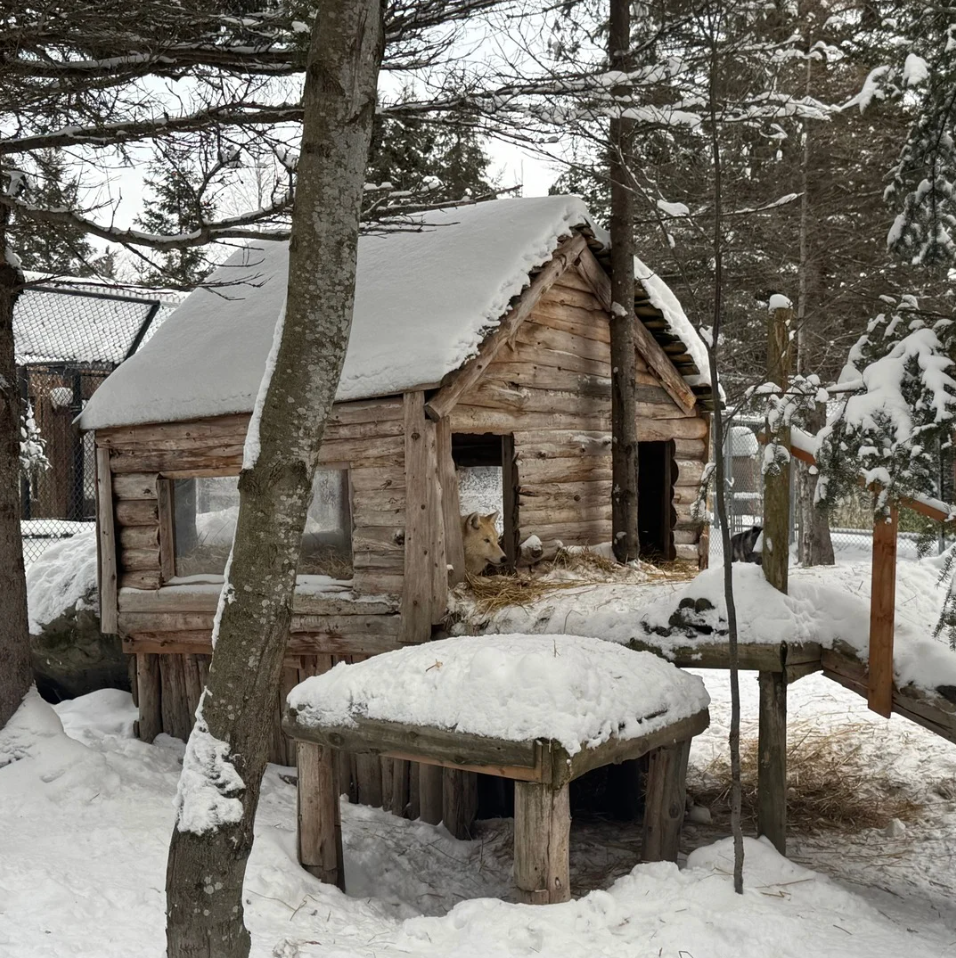 Embark on a guided walk through peaceful, snow-covered enclosures. Hear fascinating stories about each wolf, their behavior, and their role in the natural ecosystem. The experience is designed for all ages, with easy, well-maintained forest trails that invite quiet reflection and connection with nature. Browse the gift shop for meaningful souvenirs supporting the sanctuary’s mission.